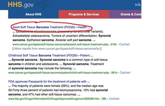 所以我登录卫计委的网站,输入关键字“滑膜肉瘤”。