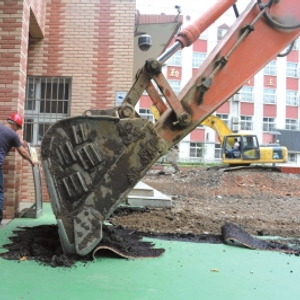 昨天上午,实验二小白云路分校塑胶操场开拆。