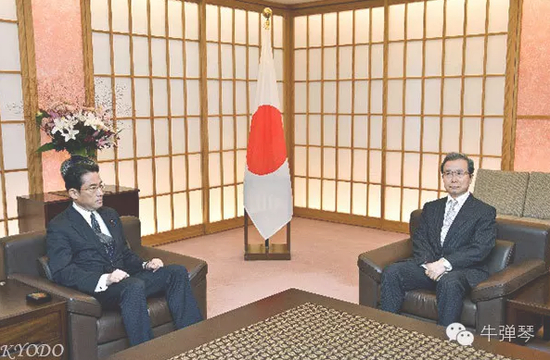 上面这张照片,就是当时会见时的场景,左是日本外相,右是中国大使。亮点很多,可能互相表达完抗议,两人都是满面严肃,程大使头还略朝外偏,神情中带着些不屑。
