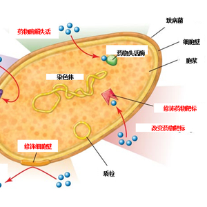 这些被祖辈视为“歪瓜裂枣”的细菌幸运儿身上到底有哪里变得不一样呢?有的改变了抗生素与之作用的靶点,让抗生素摸不到门路;有的则身披铁布衫,让抗生素无法进入细菌内;还有的主动出击产生钝化酶,让抗生素失活。总体来说,他们都是通过自身主动发生结构性改变,而让“呆板守旧”的抗生素无功而返。