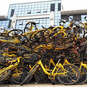 共享单车进入南京后,数量呈爆发式增长,迄今已超过45万辆。乱停乱放、“僵尸车”盘踞道路、退市企业“遗孤”……据媒体报道,在鼓楼区清江南路一处停车场,城管清拖的违停车辆堆积成山,保守估计有上万辆。