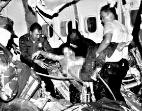 本报综合报道 11月30日傍晚,印度尼西亚雄狮航空公司一架航班号为JT-538的麦道—82型客机在中爪哇省中部梭罗市艾地·苏马尔默机场降落时,撞断跑道栅栏,冲进机场外的墓地,机身断裂后发生爆炸,至少造成26人死亡、43人重伤、32人轻伤和47人失踪。这是近6年来印尼发生的最严重的空难。