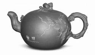 宜兴高级工艺美术师桑黎兵创作的《松鼠葡萄壶》为传统样式壶,壶体呈圆形,似葡萄状,壶嘴、壶扭、壶把以葡萄藤蔓表现,壶身贴有葡萄串和葡萄叶,通体丰满圆润,色泽纯真,光亮柔和,寓意中国国泰民安,子孙满堂。该作品在第二届中国工艺美术大师精品展暨第二届中国工艺美术优秀作品评选中获“中国工艺美术金奖”。作者桑黎兵是宜兴紫砂艺苑十二精英人物之一。