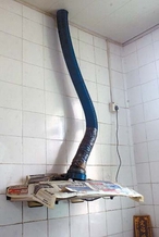 另外,从小鸟栖身处到抽油烟机的外排口,抽油烟机的烟管约长两米左右,外排口在房子的外边。记者推断,小鸟的“妈妈”估计是将巢筑在排烟管伸出外墙的部位,小鸟出生直至可以走动时,因相继“失足”而顺着烟管掉入了油烟机的出烟口挡板部。
