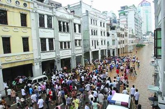 6月22日早上,已采访一个通宵想补充一下体力的记者就发现,想在中意的餐厅找一个位置还真是难,都已是人满为患。在喝早茶的人中,有一家几口的,也有朋友相聚的,情绪都没有受到大水到来的影响。惟一受洪水影响的是,当天的早茶不能供应水量充足的牛奶和豆浆。