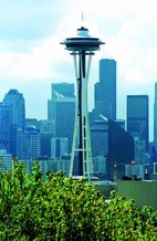如果要我说是哪一刻让我产生了这样的感觉,我想是当我经过了莫瑟岛和哈德利大桥后,我看到,在深粉红色的天空上,飘浮着一个像火炬一样的东西,那是太空针塔的塔尖。忽然之间,我觉得它浓缩了美国让我向往的一切:诗意和现代、不确定性和技术挑战、城市的灯光、挥之不去的黑暗和高高的钢架。当我还小的时候,我就很喜欢念叨“摩天大楼”这个词。
