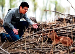 郭耕照顾小麋鹿。首席摄影记者郭铁流/摄