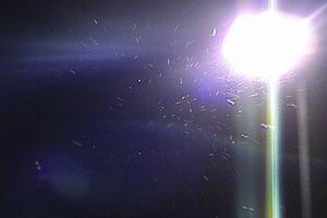 1、在一张拍摄的图像中,可以清楚地看到灯光下有许多小飞虫在飞舞。