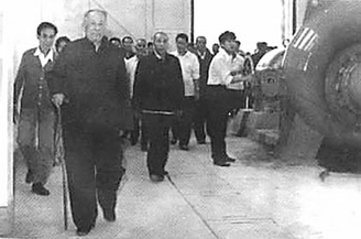 喻杰(前一)回到家乡平江兴办农村小水电站。