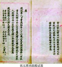 这是光绪二年(1876),新科状元曹鸿勋殿试考卷。