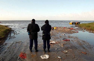 在海岸救生站面海的落地窗前,值班人员正通过高倍望远镜,在海面上认真搜寻,不放过可以发现生还者的任何蛛丝马迹。救生站负责人约翰·比特对记者说,他们已连续工作了10几个小时。