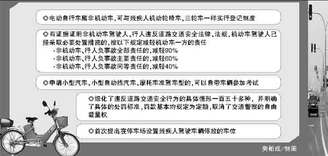 意见稿规定,电动自行车、残疾人机动轮椅车、三轮车实行登记制度。依法应当登记的非机动车登记事项由省公安机关交通管理部门规定,非机动车号牌、行驶证的式样由省公安机关交通管理部门规定并监制。
