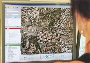 一名妇女通过“Google地球”在电脑上察看意大利罗马的卫星图像(资料照片)