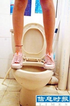 靓女嫌马桶不卫生两脚站在马桶沿上如厕(图)