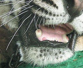 锯断虎牙对老虎身体到底有无伤害?“暴露牙神经,容易引起老虎伤口处发炎,对老虎身体肯定是不好的。”北京动物园一位饲养老虎的工作人员说,“但是老虎的牙应该能够重新长出来。”