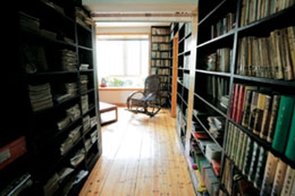 默默,撒娇派诗人,其私人书房罕见的大———足有200平方米,走进去,往往被其气势所震撼。所有墙壁都是书架,甚至三个卫生间,也统统被改造成了书房,藏书三万册。默默的书柜全都无门无窗,一律开放,用他的话说:开卷有益,没必要把书藏于深处。