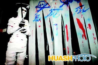 酒吧门口装扮成木乃伊的样子来招揽生意