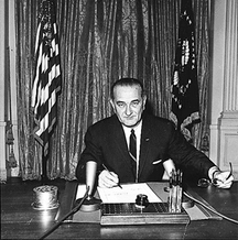 美军轰炸北越的第二天,美国总统约翰逊向国会提交了一份咨文,要求国会允许他动用美国武装部队反击北越的袭击行动,保护东南亚的“自由与和平”,保护南越和老挝。