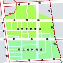 清华园街道办事处:东至京包铁路—财经东路—中关村东路,南至成府路,西至中关村北大街—清华南路,北至污水明渠。