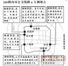 300路内环公交车,六大拥堵点制约公交速度。