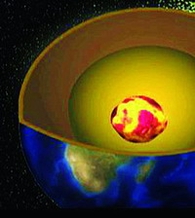 模拟图:地球中心3200英里的地方有个炽热的内核在旋转。