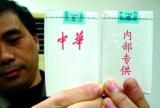 近年来,不少不法烟贩利用市场和消费者“猎奇”的心理,非法仿造这种白色包装的卷烟,并美其名曰“内部专供”、“特供”、“极品”、“样品烟”、“军队专供”等等,一般售价都比正品中华低很多。不少消费者盲目听信白壳香烟有神秘背景的谣言,误认为此物是“中华”香烟中的极品。(郑力张长瑞)