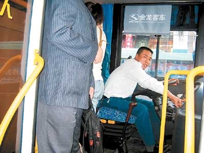 多数市民看到的大巴司机,就是驾驶台上认真操作将每位乘客安全送抵目的地的形象。市民可以瞥见的,除了司机们的容貌,就是摆在驾驶座旁的水壶,偶尔会看到他们在等红灯之时喝口水润润喉咙;热天时还有一个很小的电风扇转着转着,给司机们带来丝丝凉风。因长时间处在紧张工作状态,司机们看起来较为严肃、专注。偶尔有乘客问话,他们需要仔细聆听才清楚在说什么,因为回应的动作稍微慢了些,一些乘客就把它称作“不耐烦”。在驾驶座那方寸之地,司机们除了谨慎操作,还兼有售票员的某些职责——行业操作规定,在上下站时,他们会盯着乘客投币,查看投币量是否正确。