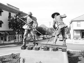 19世纪70年代,大量华工来到美国加利福尼亚州修筑铁路。图为加州民众树立的铜雕“开路先锋”,以纪念华工。丁刚摄 |