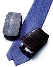 手机一向是男人最贴身的高科技宠物,所以他们总是在不计余力地让这些宠物能酷一点、特别一点,当然还不能亏待了把玩时的手感。黝黑色光面小牛皮,光泽润滑,纹理细密,镀钯的锁件,细密而均匀的针脚……在开启皮具的一刹那,华贵而柔软的浅茶色小牛皮内里跃然眼前,让男人们时不时想把它拿出来炫耀。