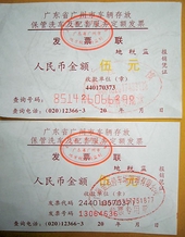 记者昨天接到市民吴先生投诉,吴先生将私家车停在位于上下九步行街的一家商场的地下停车场内,交停车费索要发票时,车场收费人员递给他3张5元面额的发票,上面盖的是“某某宾馆”的章。回到家后,他才发现这3张发票全是查询号码为12位的异形智能号码的旧版发票,他拨通广州地税发票查询电话12366查询时,该发票的号码和购买单位在电脑系统中都有记录,但进行进一步的查询和抽奖操作时,电话里总是给出“保存出错”的提示,无法进行抽奖登记。