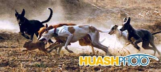 等兔子一出现,细狗们个个争相前扑,发号令一出,箭一样窜出,在绿油油的麦田上扬起阵阵灰尘。这是一场斗智斗勇的战斗,精明的兔子不但能逃出七八只狗的包围圈,而且经常出现的急转弯让几只狗碰在一起。但在众多细狗的围攻下,兔子最终很少有能逃脱的。