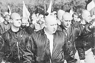 苏联解体后,由激进分子组成的法西斯暴力组织“光头党”在俄罗斯呈泛滥趋势,莫斯科、圣彼得堡、符拉迪沃斯托克、沃罗涅日等大城市更成了新纳粹主义的重灾区。“光头党”是“俄罗斯民族团结党”的别称,是上世纪90年代初成立的具有法西斯性质的政党,因成员多以光头形象出现而得名。党徒一般在20岁上下,身体刺青,与欧美等国家的“光头党”在穿衣打扮上几无二致。据统计,全世界“光头党”总数有7万人,俄罗斯就占了6万。“光头党”不但拥有自己的刊物,还自我标榜有大俄罗斯主义的极右势力作后盾。该组织崇拜希特勒,仇视并凌辱有色人种,尤其是亚裔和黑人学生,其成员抑扬顿挫地高喊俄罗斯右翼口号,还伸出右手摆出法西斯的敬礼姿态。