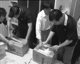 下午4时许,一个年轻女子进入伏击民警的视线,唐小姐露面了。装扮成街道工作人员的侦查人员马上跟随居委会干部,以入户访查为名敲开了她的门。一进入室内,侦查人员发现现场明显留有工作人员活动的迹象,防伪税控设备及大批资料就在屋内。警方确认屋里的女子就是唐小姐本人后,冲击了“博申”的办公地点,当场查扣3台装有防伪税控设备的电脑及IC卡、财务账册等,还有6家公司的公章、财务章(发票章)及叶某等人的私章共24枚。