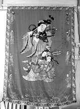 在故宫博物院的藏品集中,记者也看到了一件在构图、选料、做工等方面都颇为类似的鲁绣作品,做于清乾隆年间。但是曾应菁收藏的这件长达3.5米的巨作,比故宫的3.15米仍大出不少。