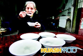 一位邻居说,有一次他特别留意,故意用小盆子给刘婆婆盛饭,刘婆婆一共吃了三盆,经称量,一满盆至少有半斤饭,三盆就是1斤半。