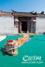 东海岛的人龙舞,如果百多人来舞就很壮观。可是男丁在外打工,一时聚不齐人,村民临时搭起四节龙来玩一下本报记者邓勃摄