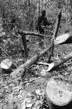 随行的村民称,这些被砍出榫口的就是要卖给煤炭老板作厢木的,其他的只能用在矿洞周围的边木(担在厢木上挡土),还有就是当烧柴。