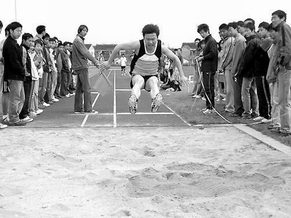 学生在校运会上奋力拼搏