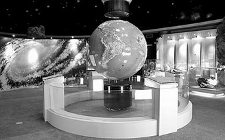 第三是在最关键的布展工作方面,始终坚持了7个原则:首先是在内容的安排上,把科学性、知识性、通俗性和趣味性有机结合;其次是精心准备一批化石、宝石、矿物等地质标本精品,特别是大型珍品,其中部分标本在国内位居第一,在世界上也极为罕见;第三是大量地采用声、光、电技术,局部采用了高新科技手段,以提高布展的科技含量,烘托展示气氛;第四是大量采用模拟技术,在展厅中精心设计和制作典型的地质景观,用直观、形象的手段展示深奥的地学内容;第五是广泛采用防火、阻燃、环保的新型布展材料,达到绿色布展的效果;第六是采用计算机、多媒体、网络、影像等现代信息技术,形成信息化展示系统;第七是设计制作有关观众参与的项目,实现互动性和参与性。