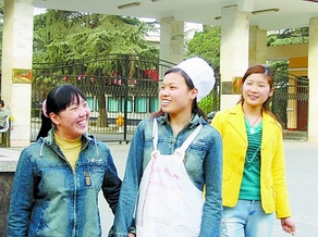 图二:姑娘们下班后露出轻松的笑容。