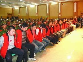 8时10分左右,31名犯罪嫌疑人被押解至亳州中院。8时30分,随着审判长宣布“庭审正式开始”,31名身着红色“号服”的疑犯被带上法庭,走在最前面的第一被告人李伟胳膊因为“混事”时被打残废,缠着绷带。 因为人数太多,法庭让这31名疑犯一字排开,足足用了9分钟,而因为这些疑犯中有很多人曾有过前科,审判长一一核实他们的身份,也用了近半个小时的时间。随后,近30页的起诉书,让公诉人足足读了一个多小时。