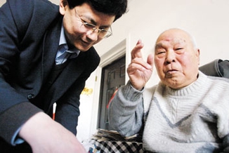 上图 崔振荣老人讲述目睹活捉陈长捷的情景。 张 立 王 炜摄