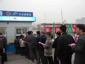 4月1日,北京市710个网点全面开始发售公交地铁月票一卡通。早上6点半,来到四惠公交车站一卡通发售点,等待发售月票卡的乘客已经开始排队。6点58分,该发售点售出第一张公交IC卡。