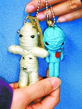店主说,“巫毒娃娃”是他朋友从外地寄来的,都是泰国产的。他说,“巫毒娃娃”起源于非洲南部的巫毒教,在海外已经风行了多年。