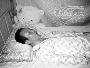 记者昨日下午赶到澄迈红光农场敦龙队看到躺在床上的龙建平。