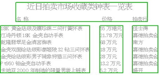 记者从市场了解到,拍卖市场逐渐成为了钟表收藏的价值风向标。比如,佳士得近日拍出一块18K黄金珐琅及镶珍珠二问打簧怀表,55万港元成交,立刻使市场对同类的20世纪初产品产生了追捧热潮。而记者从嘉德国际拍卖有限公司了解到,自从去年该公司设立钟表专场拍卖会以来,钟表的拍卖价格也水涨船高。