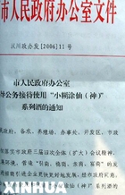 这是湖北省汉川市政府2006年下发的“喝酒文件”(4月6日摄)。湖北省汉川市日前发生一桩怪事:市政府办公室下发红头文件,给市直机关和各乡镇农场下达喝酒任务,全市各部门全年喝“小糊涂仙”系列酒价值总目标为200万元,完成任务的按照10%奖励,完不成的通报批评。 新华社记者 张先国