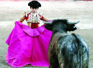 2006年4月15日,墨西哥最年轻的斗牛士、9岁的拉菲塔正在斗牛,切下了两只牛耳的他得到了观众的满堂喝彩。