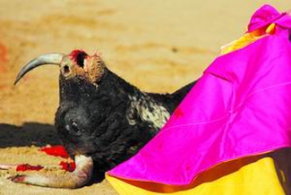 当然,绝大多数情况下,每场比赛都有一头牛被杀死。胜利的斗牛士通常会得到两只牛耳作为荣誉的象征。