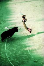 斗牛的过程是危险与优雅共存的过程,是对自己和强于自己的愤怒的野兽的力量的挑战。在千百双目光的注视下,斗牛士手中的短剑与公牛犀利的牛角进行生死角逐。